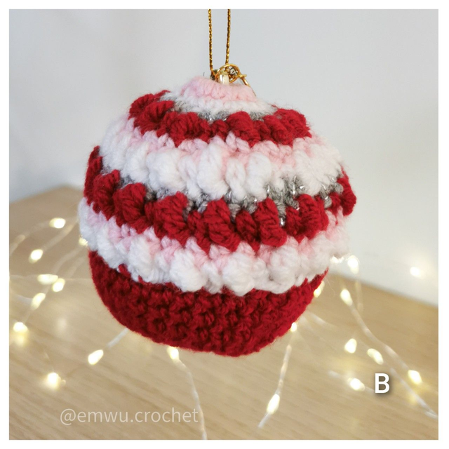 Redécouvrez la traditionnelle boule de Noël avec la version revisitée en crochet d'Emwü qui en fait un objet de décoration unique.