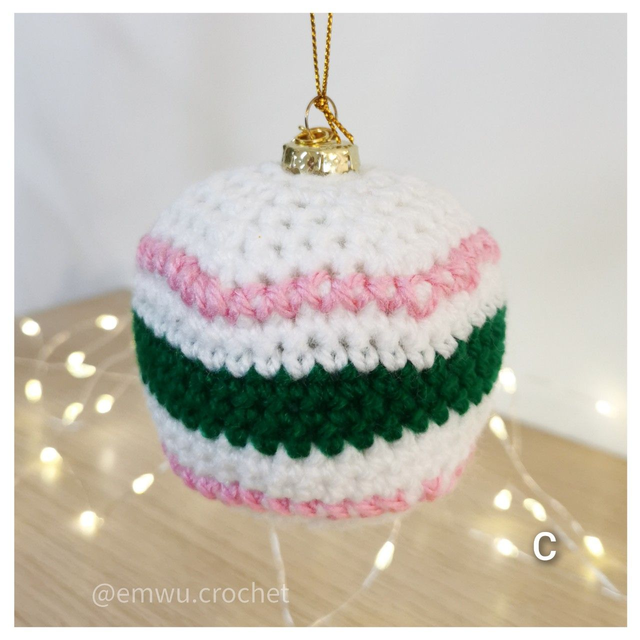 Redécouvrez la traditionnelle boule de Noël avec la petite version revisitée en crochet d'Emwü qui en fait un objet de décoration unique.