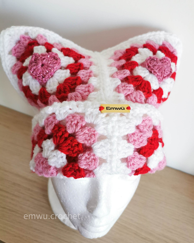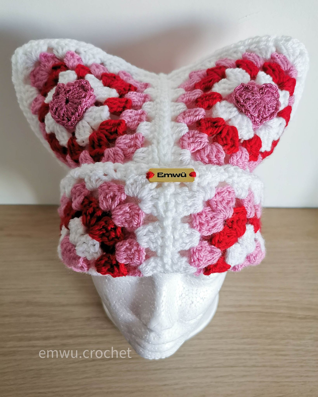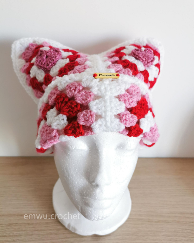 Son motif granny squares revisite le style vintage dans une version moderne et chaleureuse. Sa forme façon oreilles de chat lui donne une allure espiègle et unique. Les harmonies de couleurs, s’adaptent à votre style et à vos envies.