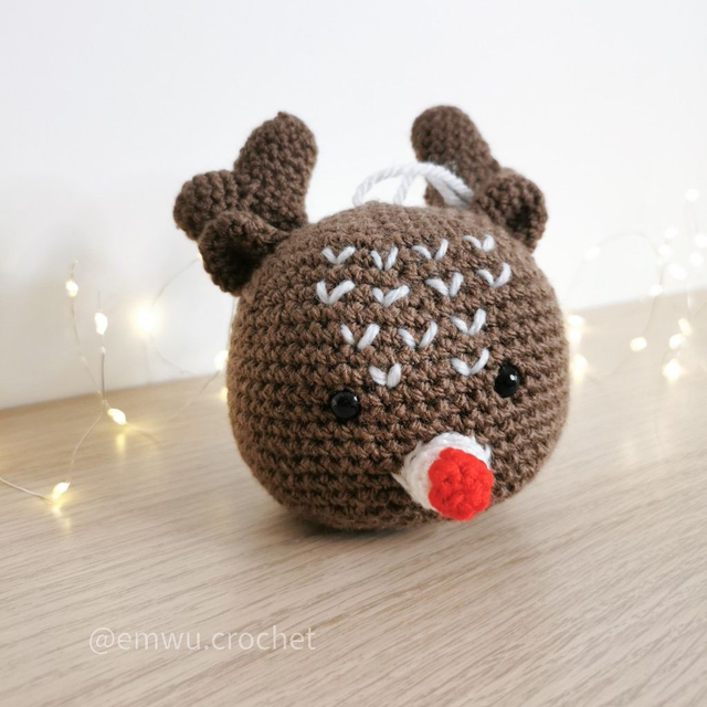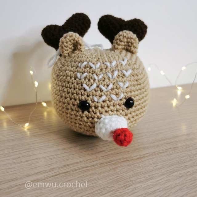🦌 Boule Renne de Noël – Boule amigurumi faite main Emwü